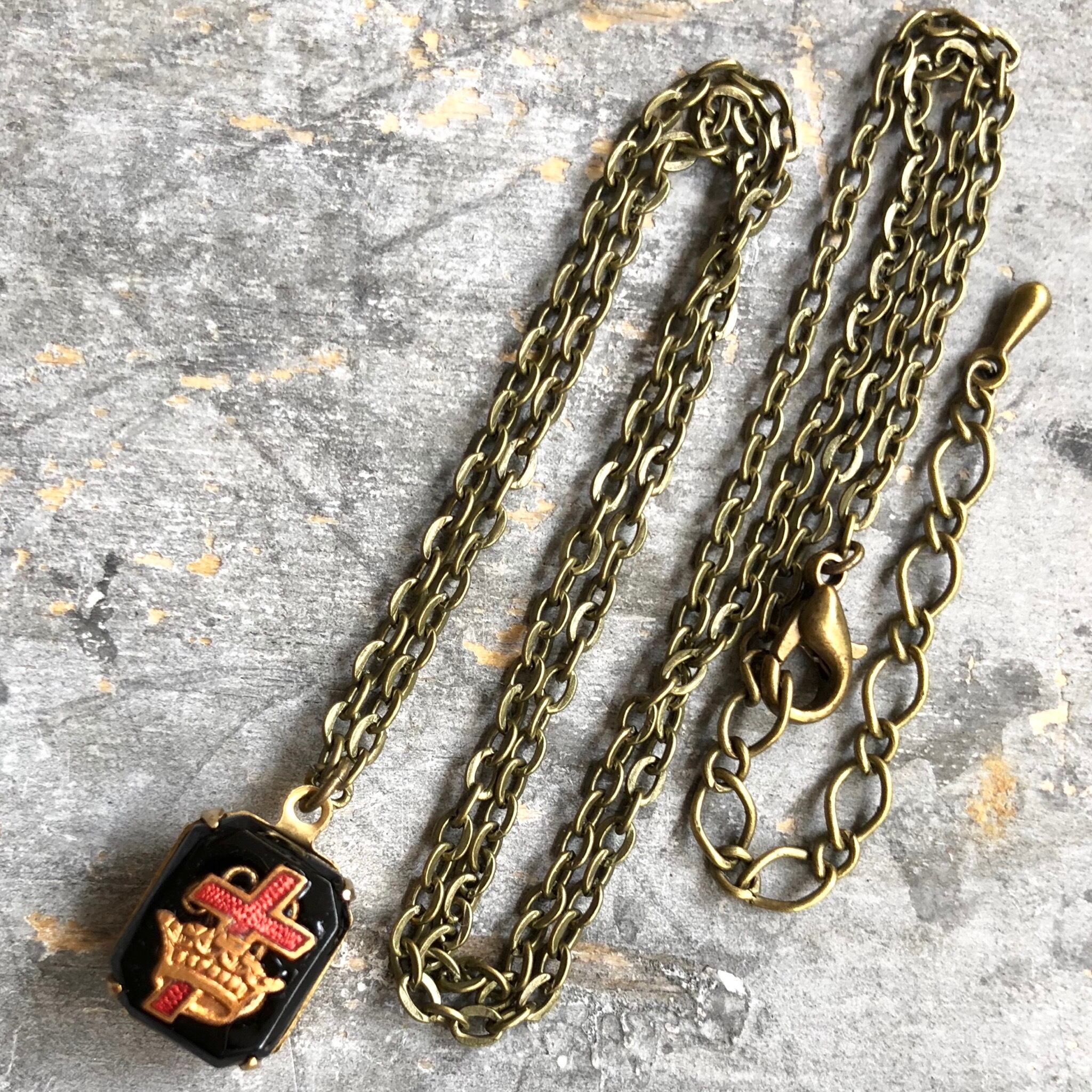 ヴィンテージテンプル騎士団スタンピングブラックストーンネックレス