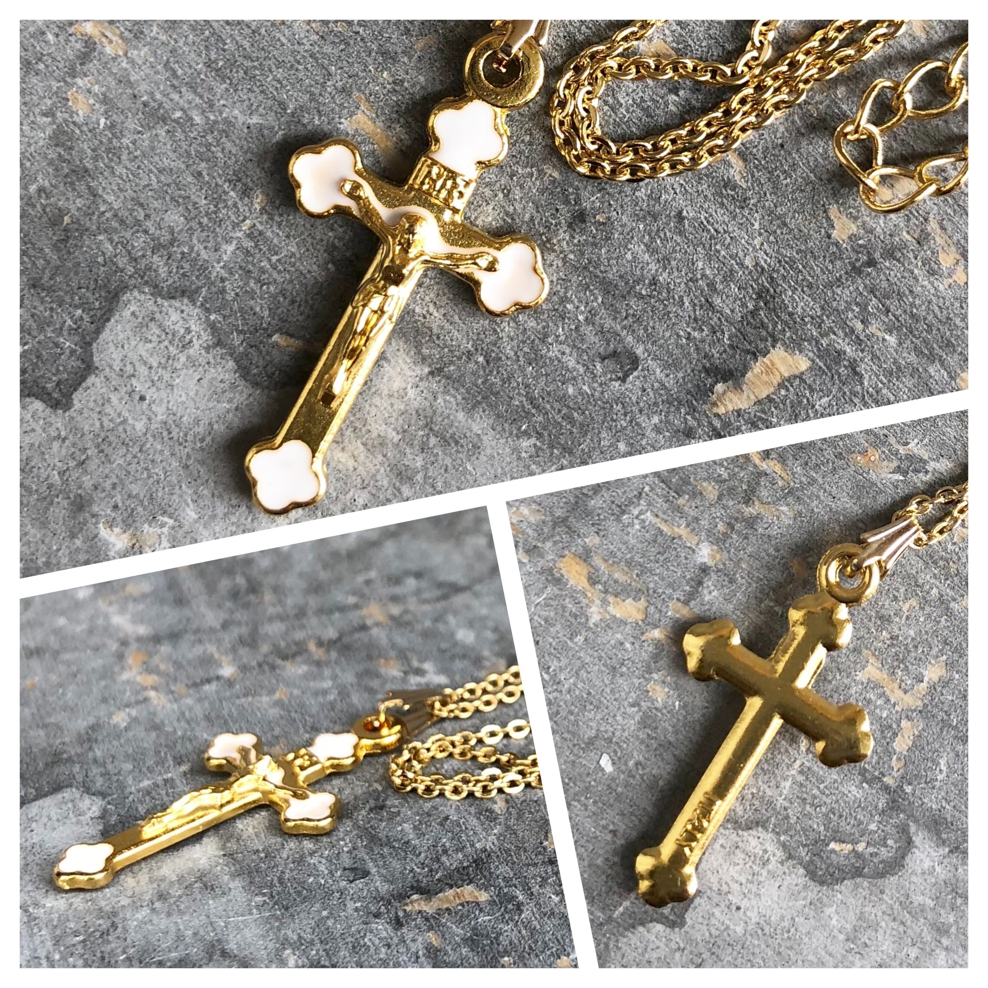 大きすぎず小さすぎないサイズ感のゴールドとホワイトカラーが綺麗なクロスネックレスです。
