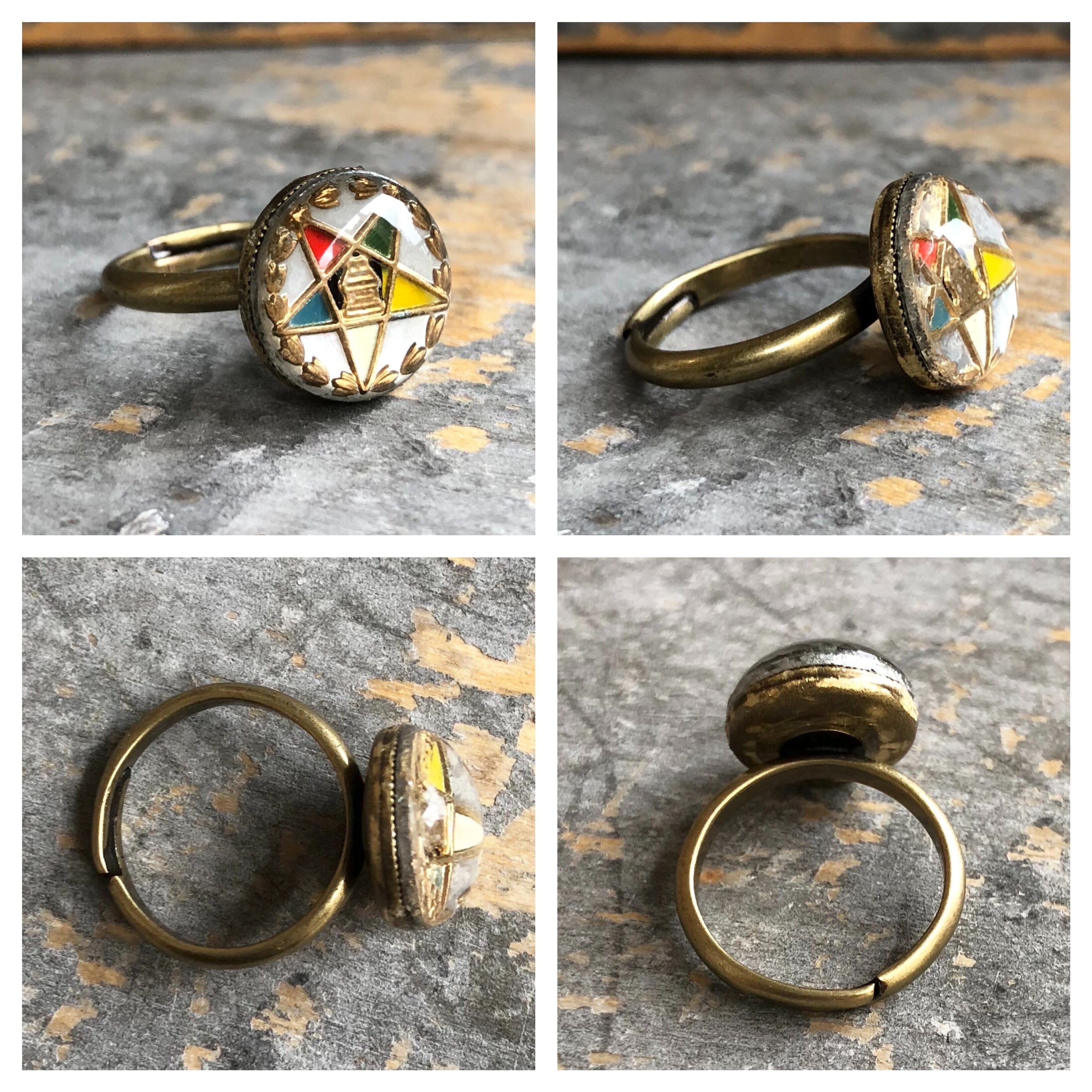 コスチュームジュエリー/アクセサリー/アンティーク/ハンドメイドアクセサリー/ハンドメイド/ガラス/男性/ユニセックス/プレゼント/ストーン/紋章/ペアアクセサリー/ペアネックレス/メンズ/エンブレム/ペンタゴン/フリーメイソン/フリーメーソン/ペチコートメイソン/Fatal Star/tinystar/ラッピング無料/シンプル/指輪/ペアリング/ゴールド/レッド/ブルー/グリーン/イエロー/ブラック/イースタンスター/カレッジリング