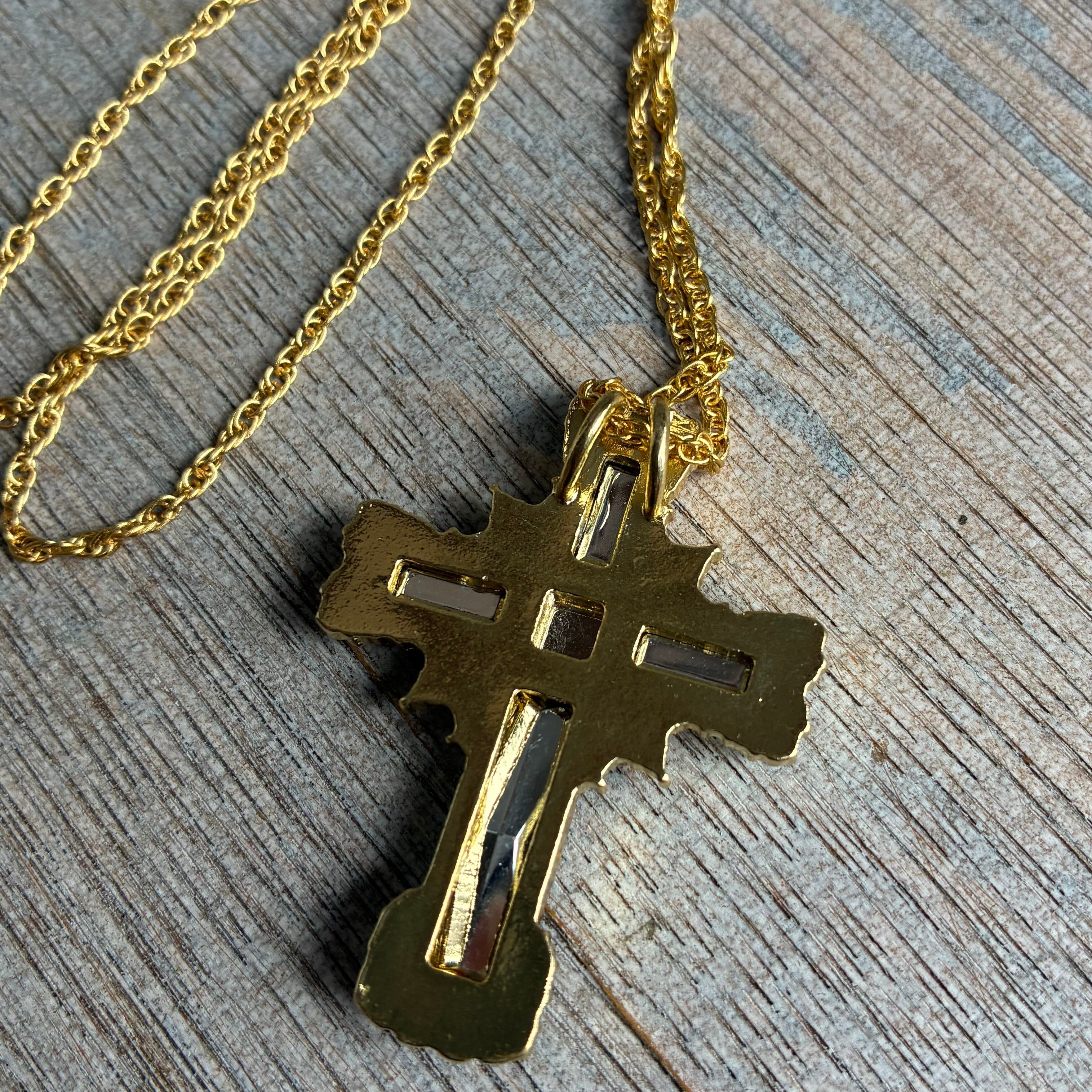数量限定 ライトブルー ストーン キラキラ シャイン クロス ネックレス ペンダント 十字架 綺麗 キリスト マリア 青 水色 ゴールド アンティーク風 ヴィンテージ風 お守り カトリック
