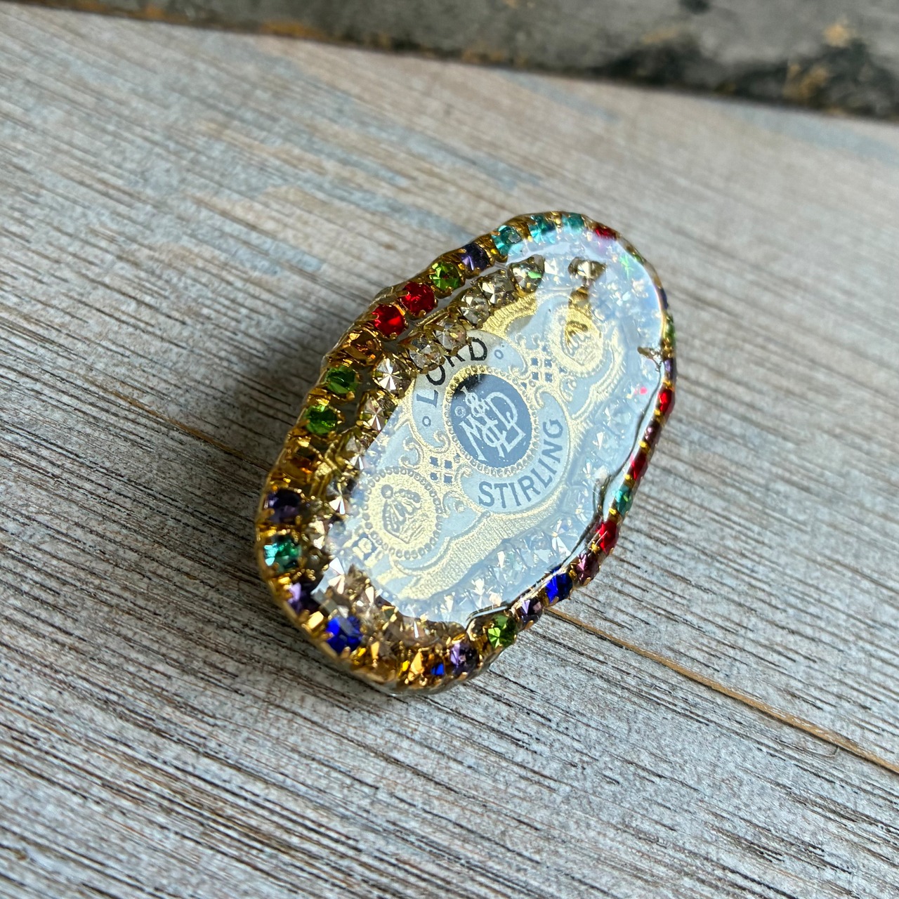 LORD STIRLING ヴィンテージ シガーラベル ダブルビジュー ピンバッジ ブローチ バッヂ ゴールド カラフル ブラック キラキラ ラインストーン ストーン 昭和レトロ アクセサリー 昭和