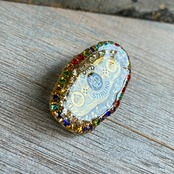1940年代のヴィンテージのシガーラベルにラインストーンを飾ってレジンでコーティングしピンバッジにしました!