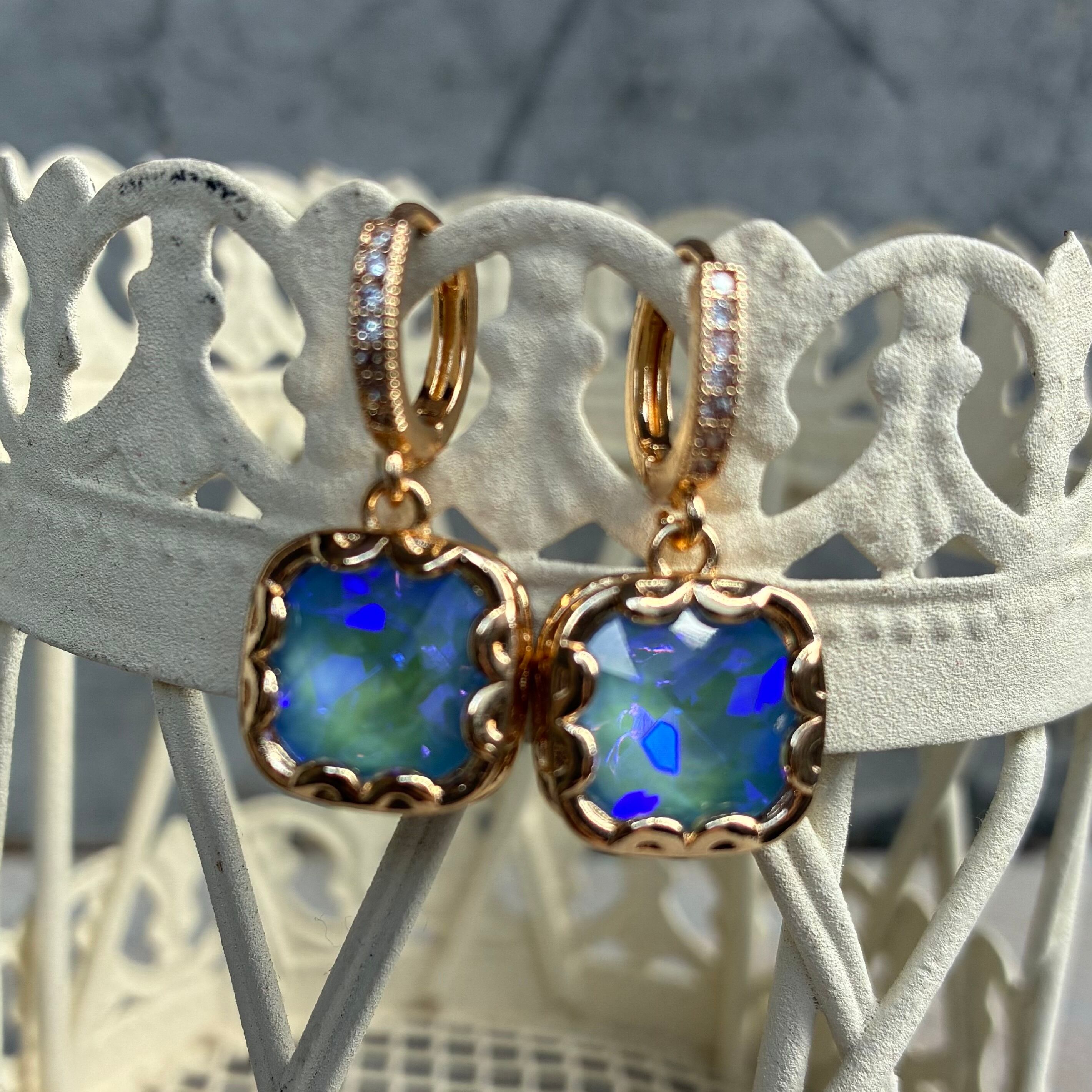 絶妙なブルーカラーが魅力的な一粒ビジューピアスです。