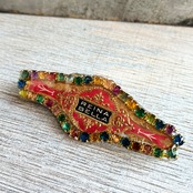 REINA BELLA ヴィンテージ シガーラベル ビジュー ピンバッジ ブローチ バッヂ ゴールド カラフル ピンク キラキラ ラインストーン ストーン 昭和レトロ アクセサリー 昭和