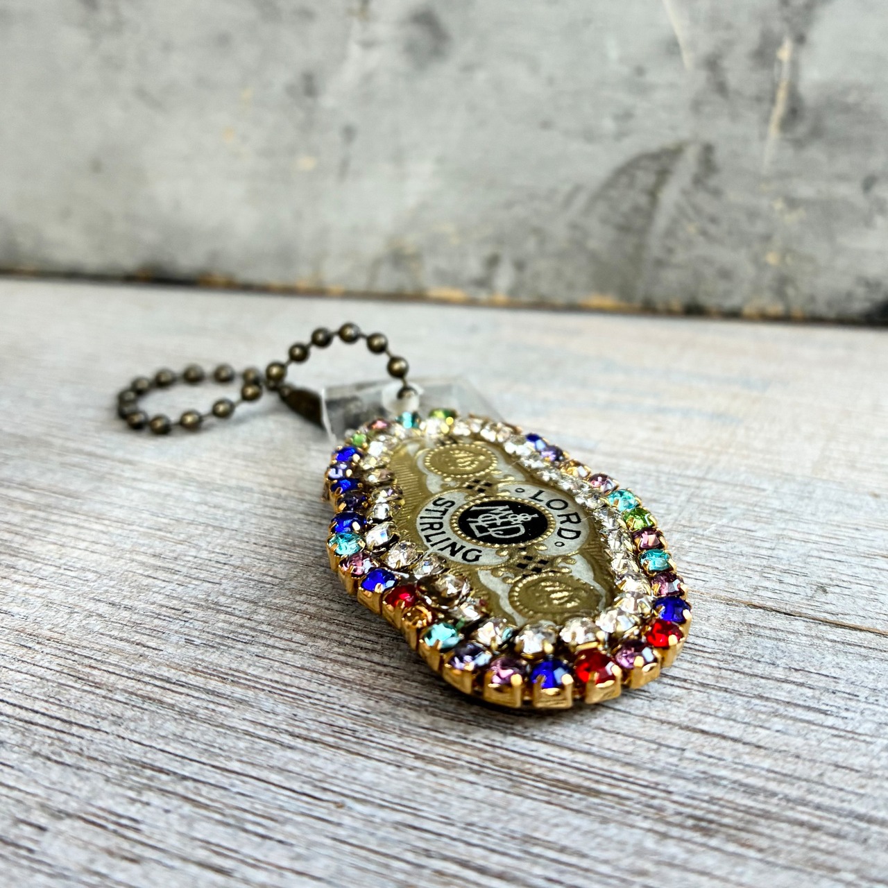 LORD STIRLING ヴィンテージ シガーラベル ダブルビジュー ボールチェーン キーホルダー ストラップ ゴールド カラフル ブラック キラキラ ラインストーン 昭和レトロ キーチェーン