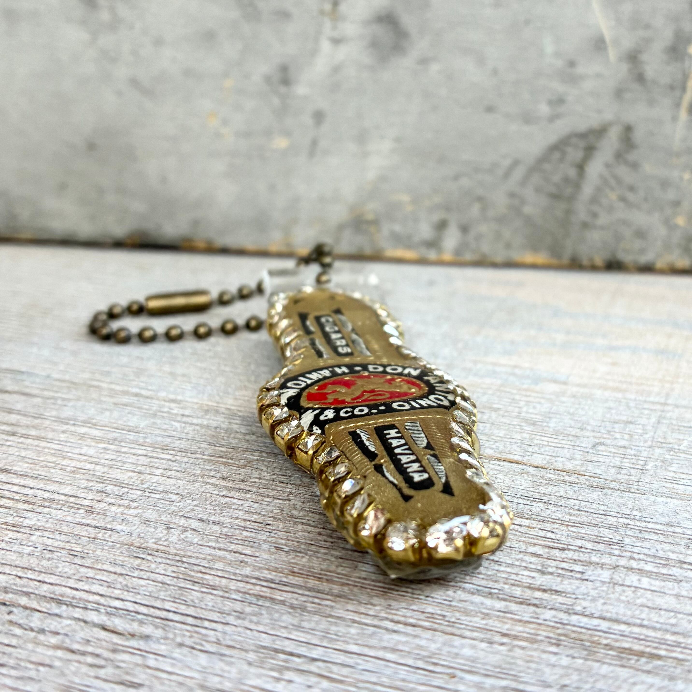 1940年代のヴィンテージのシガーラベルにラインストーンを飾ってレジンでコーティングしボールチェーンキーホルダーにしました!