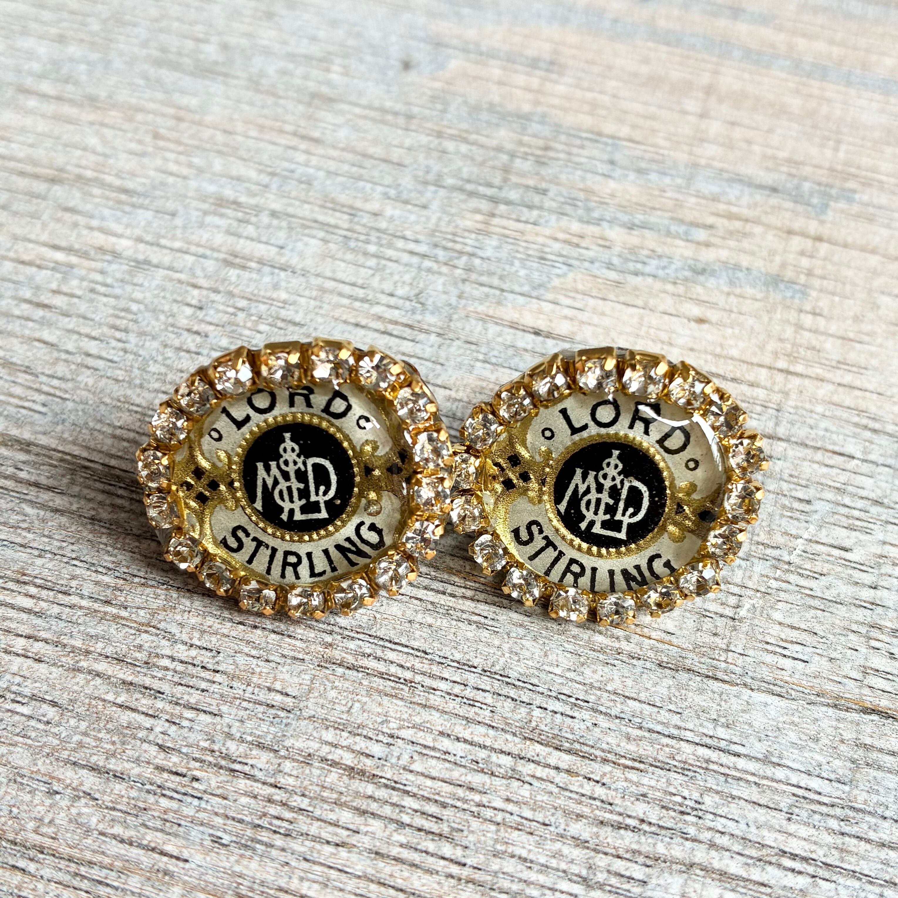 LORD STIRLING ヴィンテージ シガーラベル ビジュー ピアス イヤリング ノンホールピアス 金属アレルギー対応 樹脂 シリコン ゴールド カラフル ブラック キラキラ 昭和レトロ
