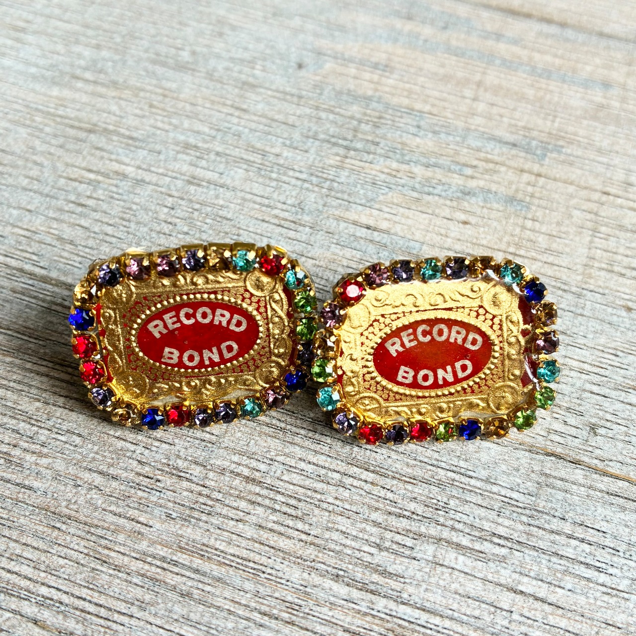 RECORD BOND ヴィンテージ シガーラベル ビジュー ピアス イヤリング ノンホールピアス 金属アレルギー対応 樹脂 シリコン ゴールド カラフル ブラック キラキラ 昭和レトロ