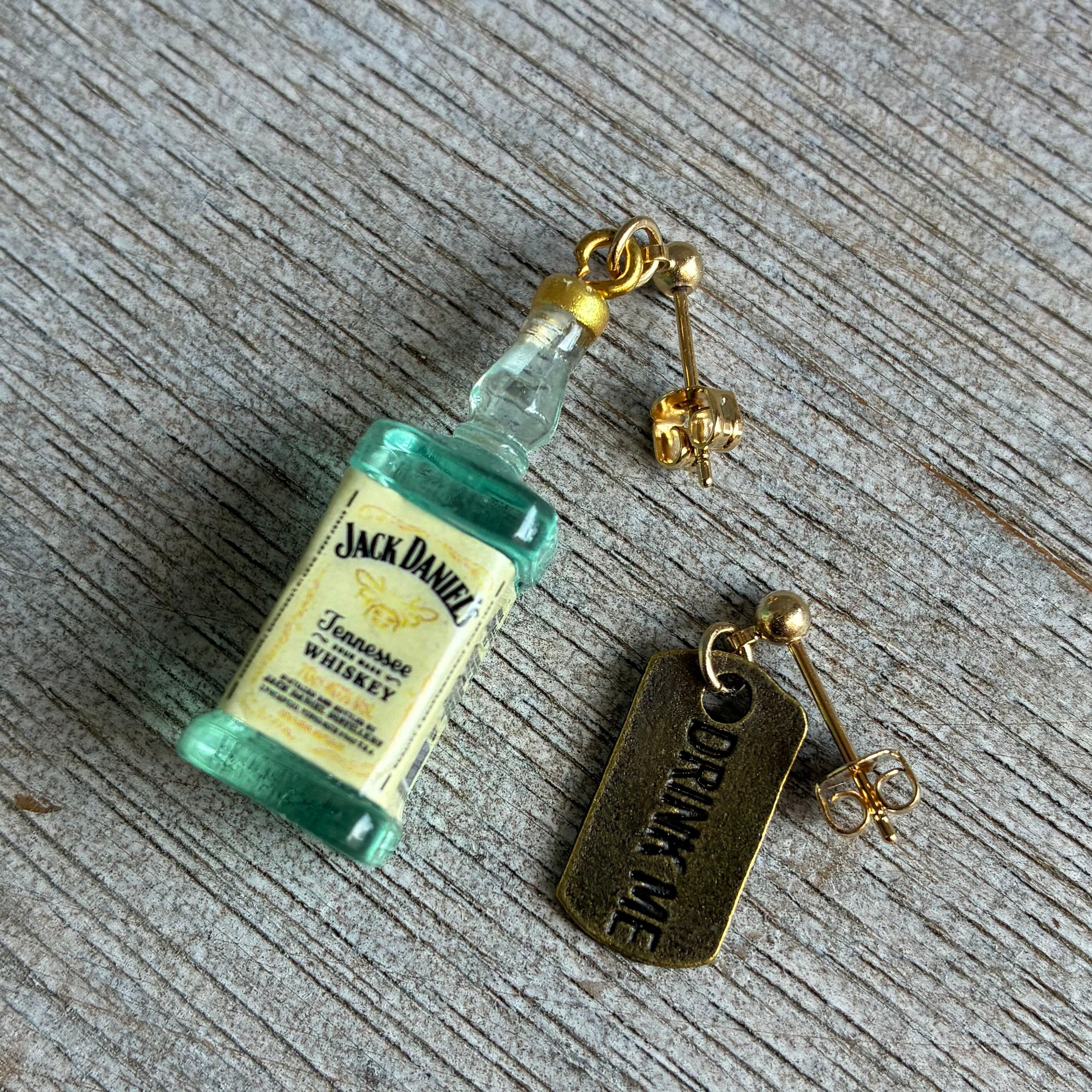 ミニチュアのドリンクとDRINK MEと刻印があるダグを合わせたユニークなピアスです✨