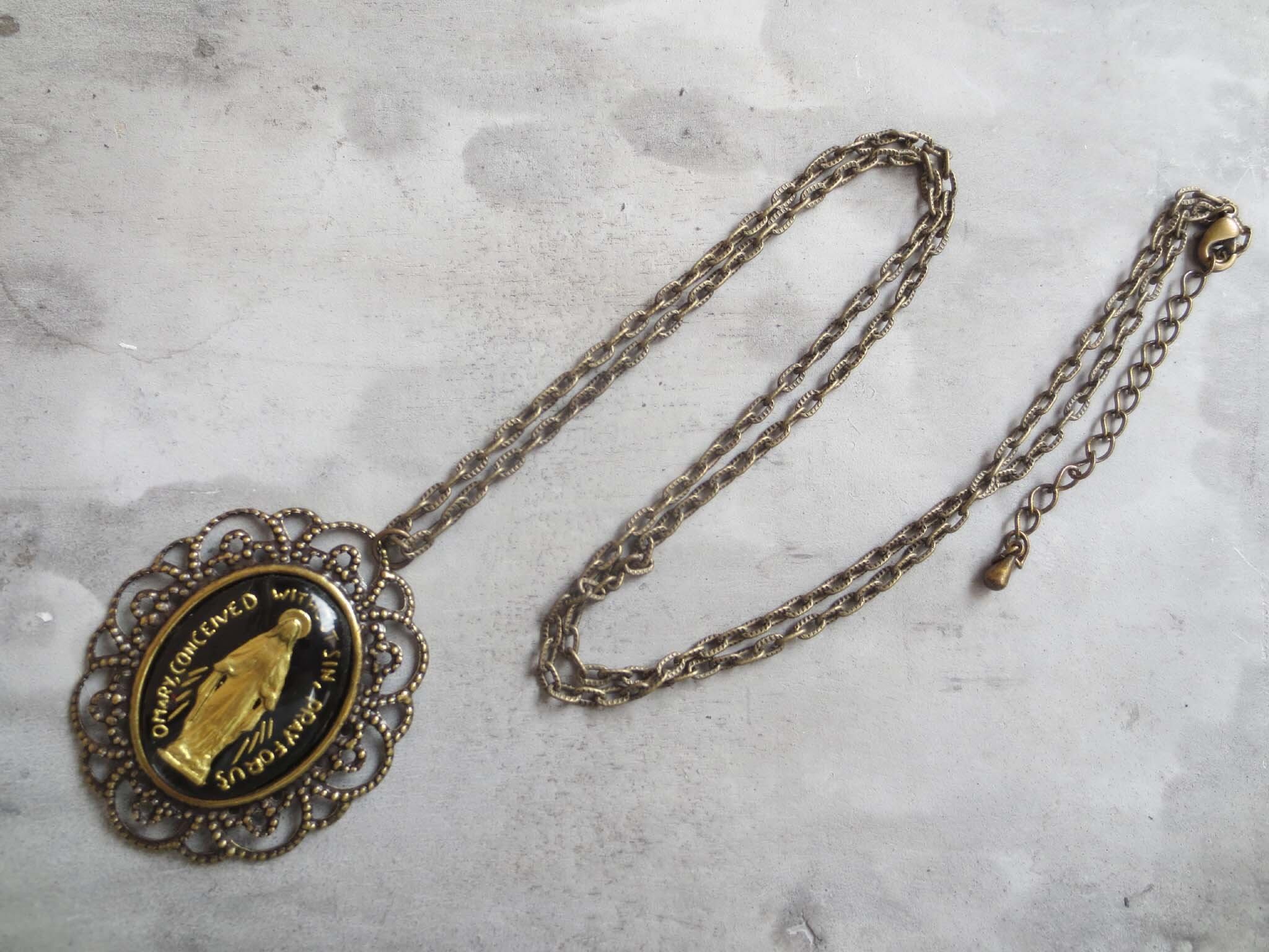 細かいマリア様の絵柄が美しいヴィンテージカボションのネックレスです。