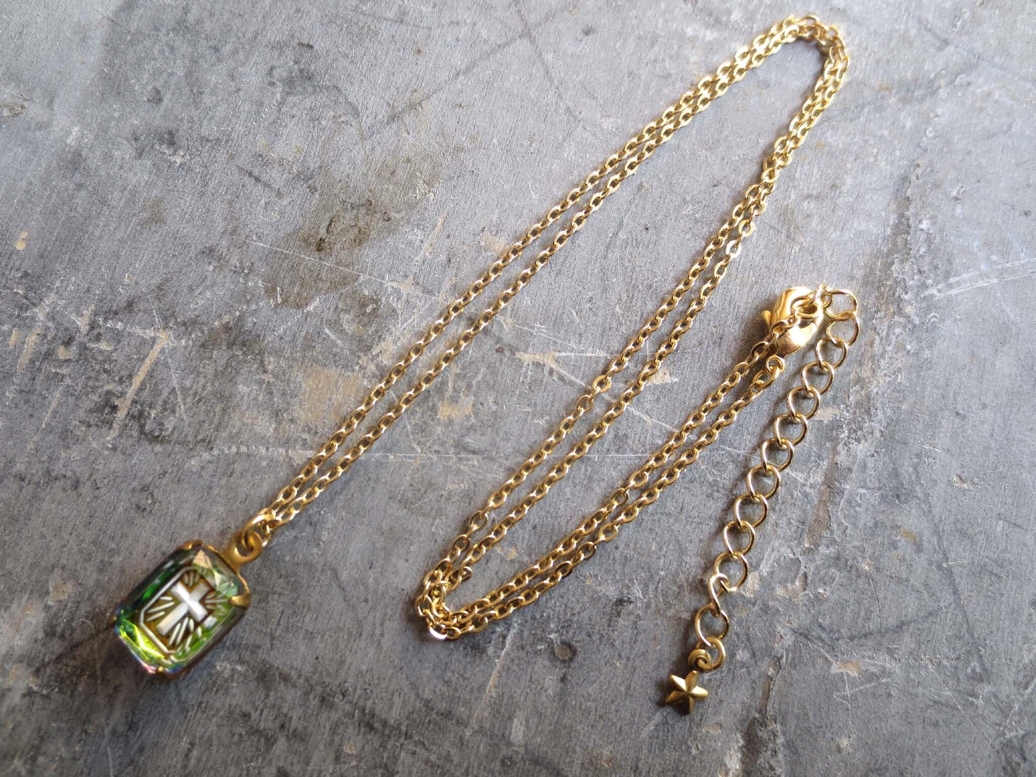 ヴィンテージのクロスオクタゴングラスストーン使用。