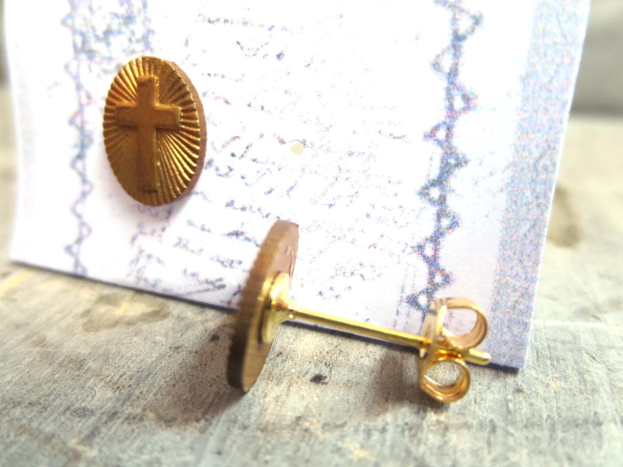 ヴィンテージの小さなクロスモチーフコインをシンプルにピアスにしました★