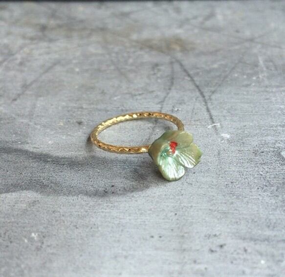 ヴィンテージプチフラワーカボションピンキーリング