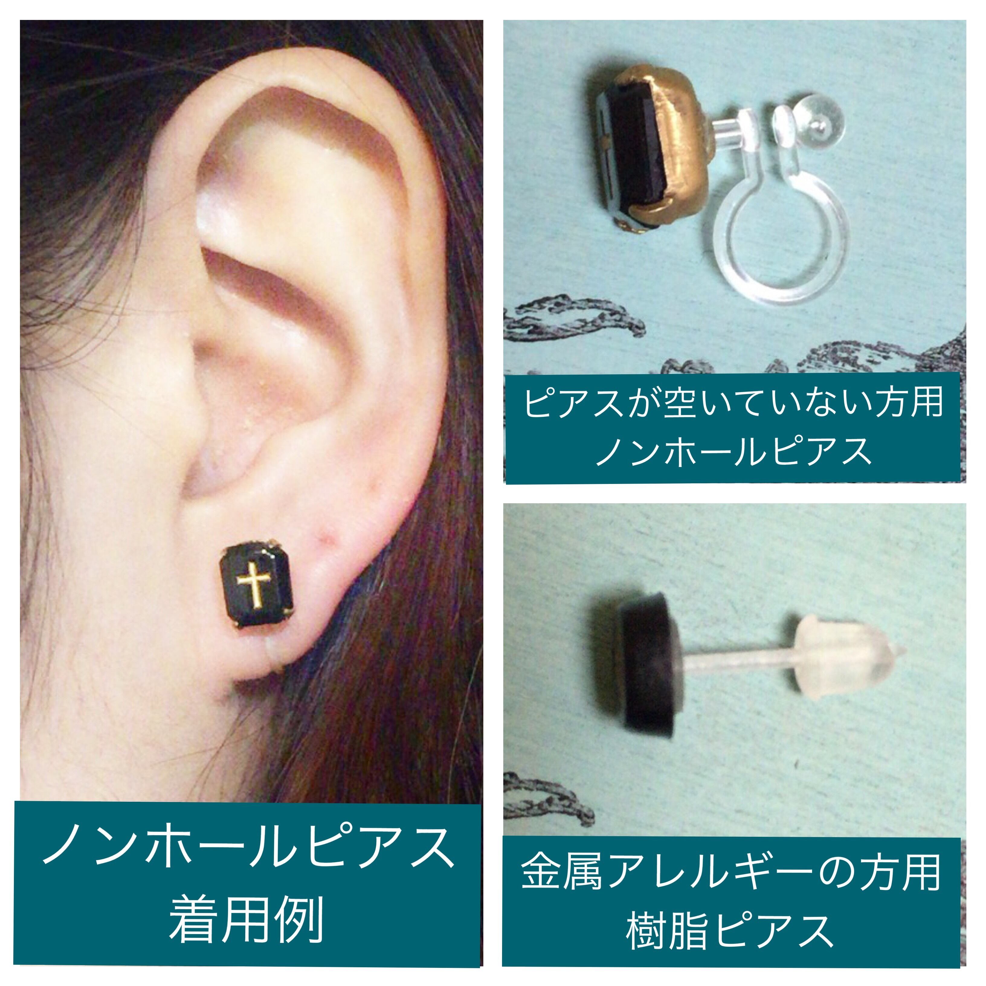 金属アレルギーの方は透明樹脂ピアスに変更可能!ピアスを開けていない方用にノンホールピアスにも変更可能です!