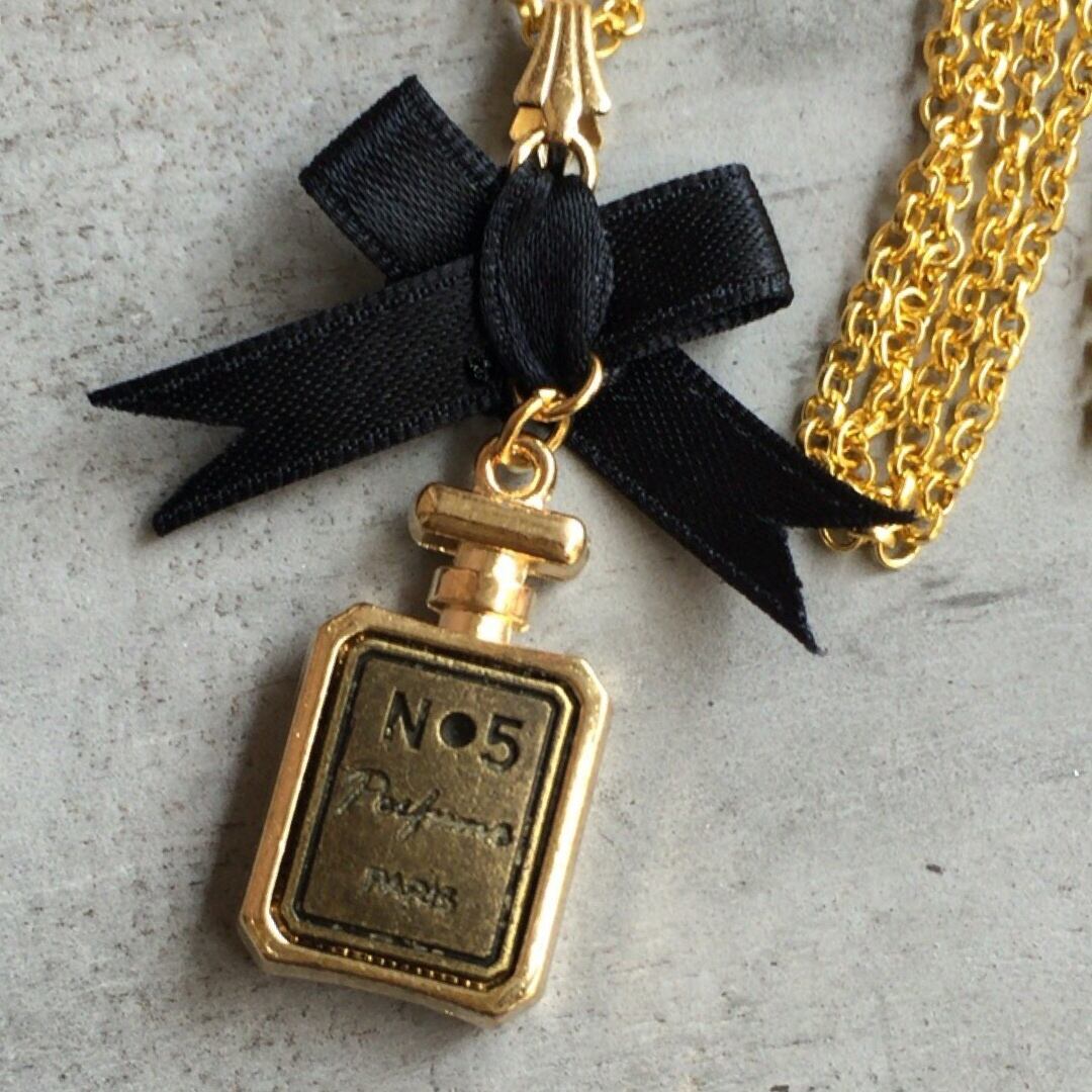 ペンダント/ハンドメイドアクセサリー/tinystar/プレゼント/プリンセス/姫/ラッピング無料/ギフト/香水/香水瓶/黒/ブラック/シャネル風/CHANEL風/coco