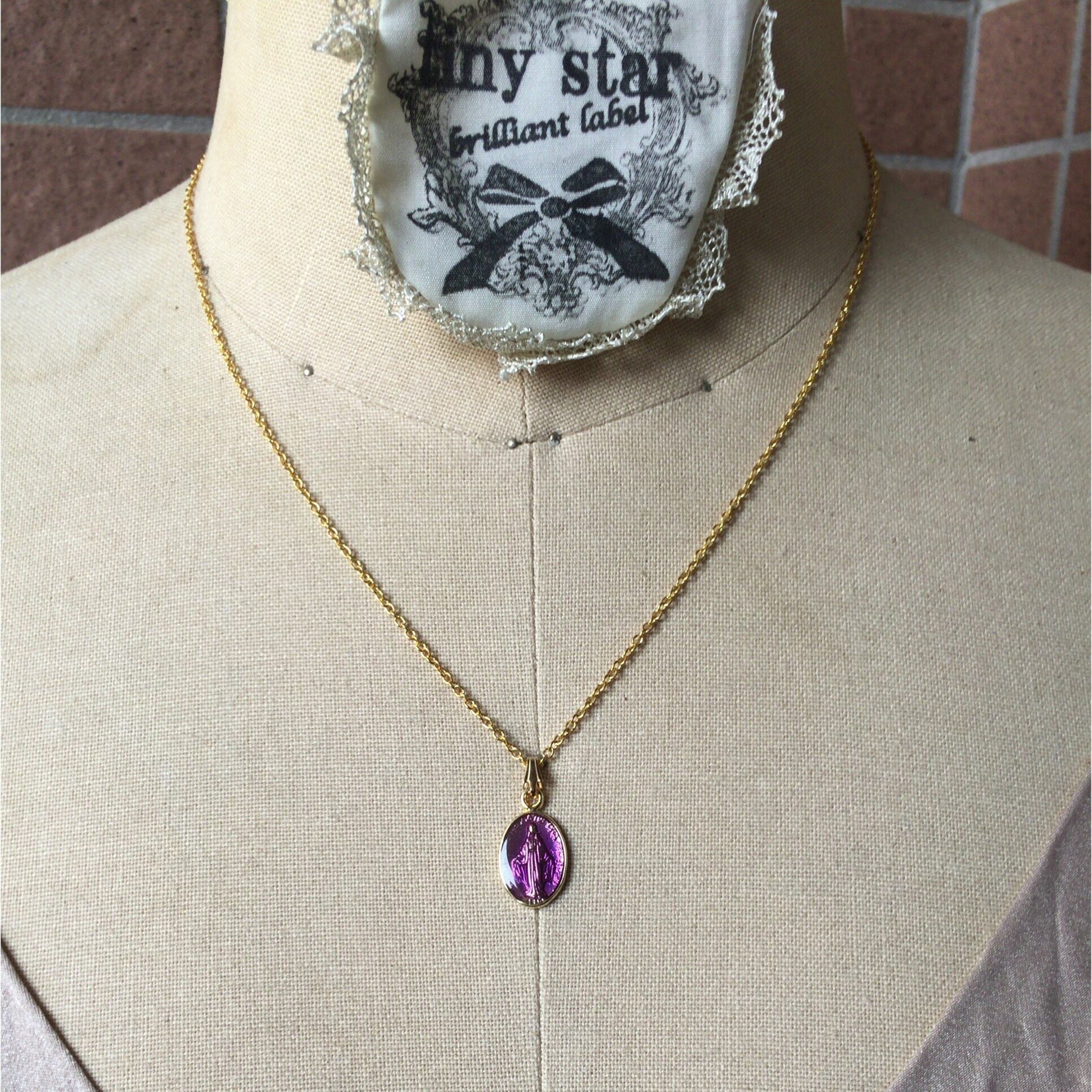 十字架/教会アクセサリー/マリア様/キリスト/不思議のメダイ/メダル/コイン/メダイユ/ペンダント/不思議/メダイ/紫/パープル/ラベンダー/グレープ/プレゼント/ギフト/母の日/ラッピング無料/tinystar/ハンドメイドアクセサリー/ハンドメイド/アクセサリー/シンプル/