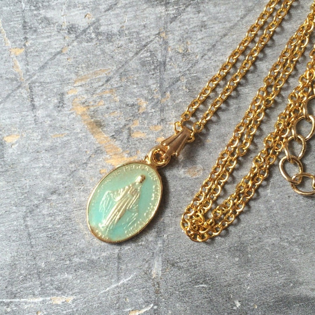 聖母マリアペールミント不思議のメダイネックレス