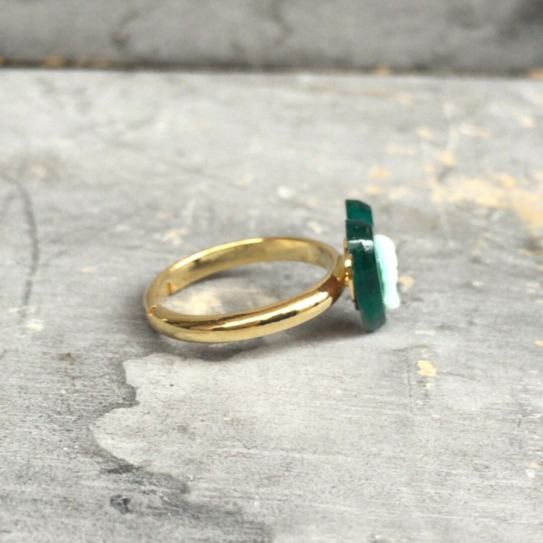 ジャーマンヴィンテージハートカボションカメオリング(エメラルド)