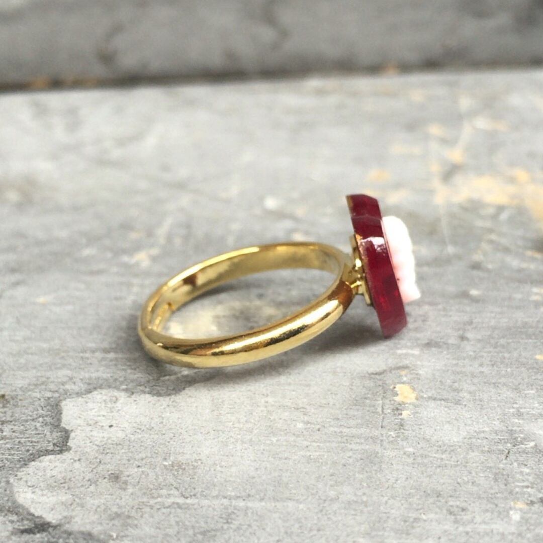 ジャーマンヴィンテージハートカボションカメオリング(レッド)