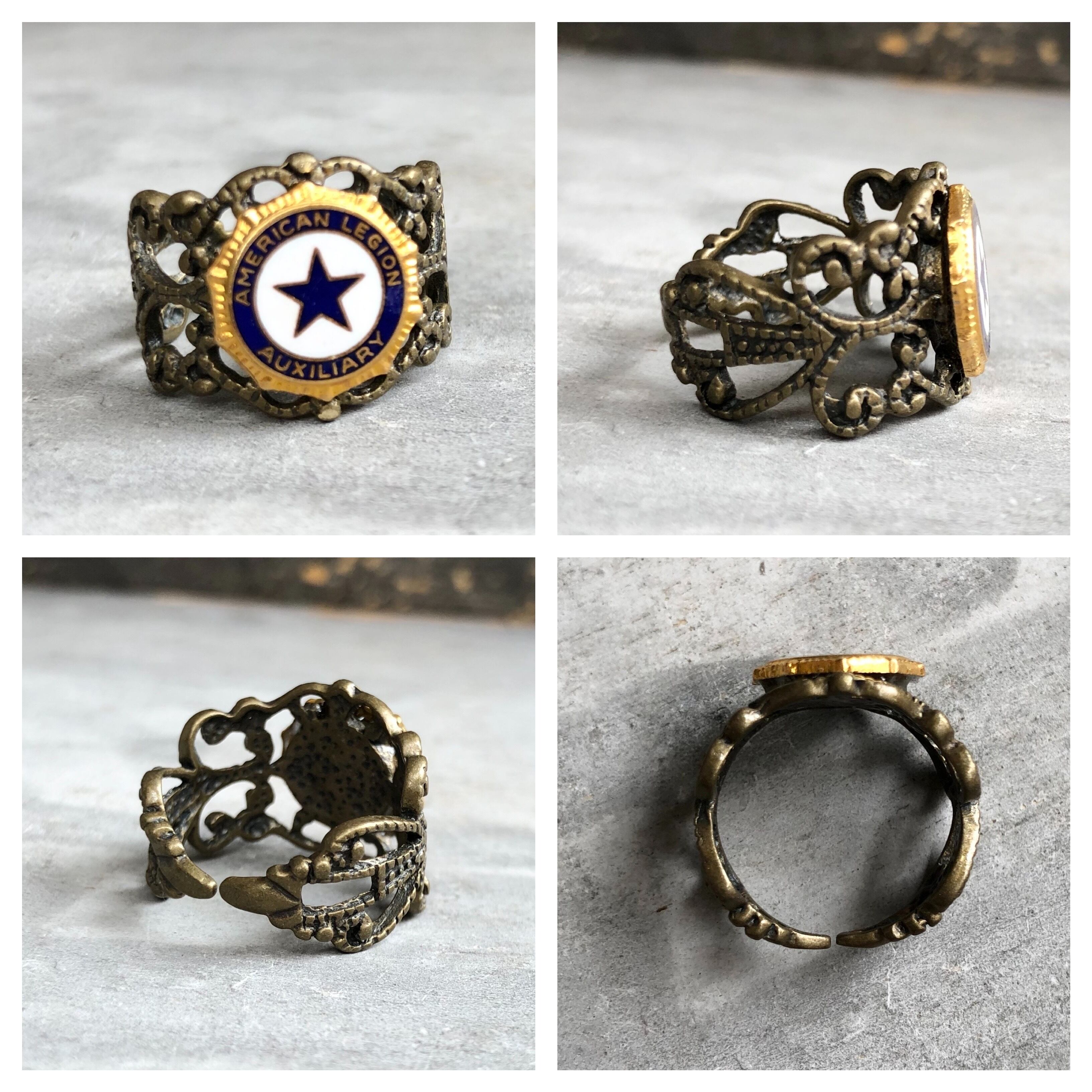 コスチュームジュエリー/アクセサリー/アンティーク/ハンドメイドアクセサリー/ハンドメイド/ガラス/男性/ユニセックス/プレゼント/ストーン/紋章/ペアアクセサリー/ミリタリー/メンズ/エンブレム/軍物/tinystar/ラッピング無料/シンプル/指輪/ペアリング/アメリカンレジオン/アメリカンリージョン/アメリカンレギオン