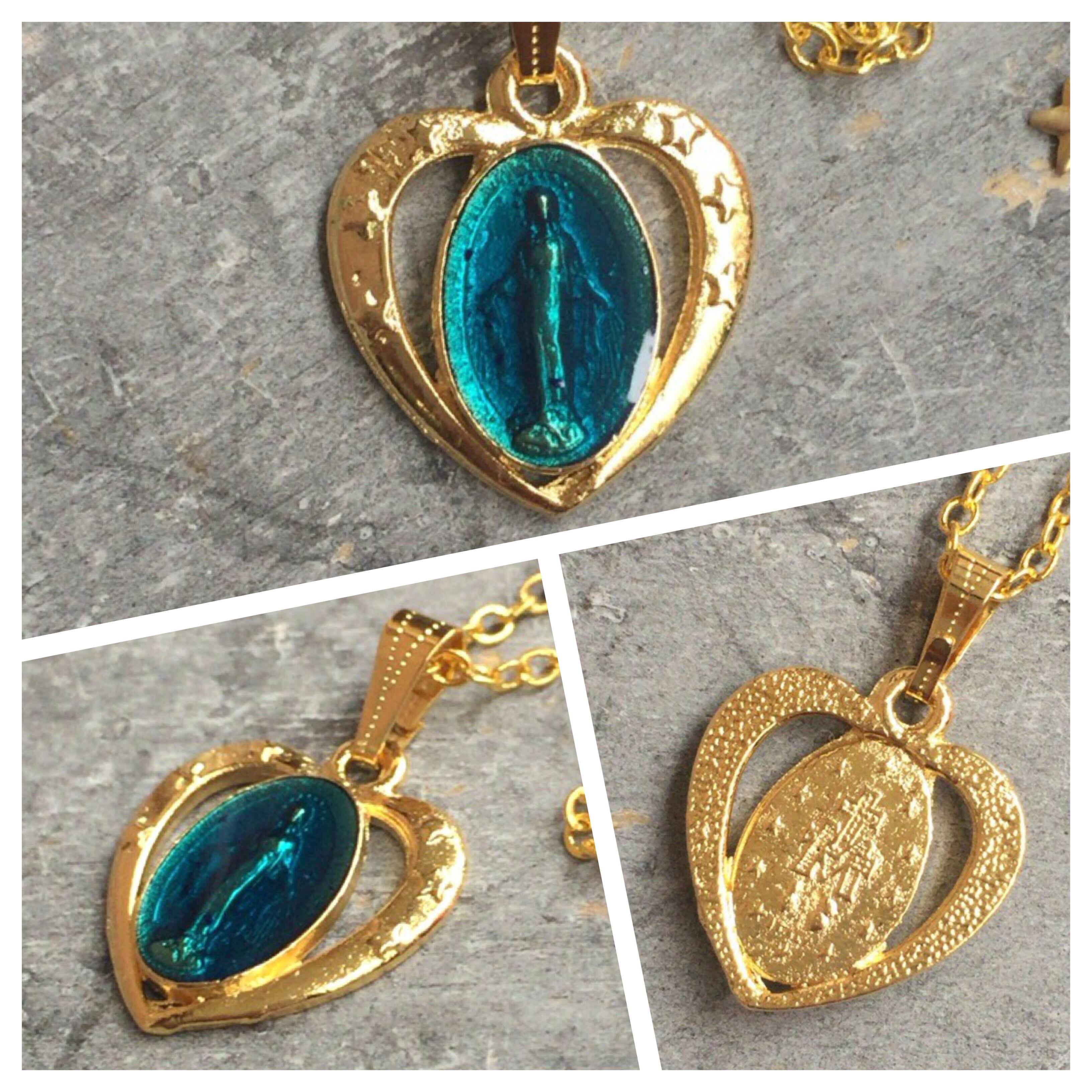 透明感のあるブルーカラーがとても美しいマリア様ハートメダイネックレスです★