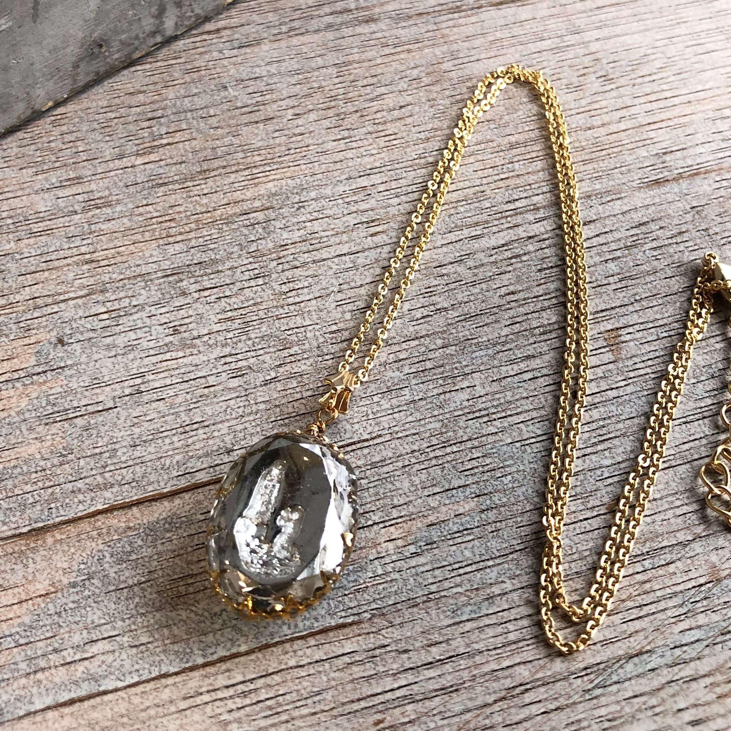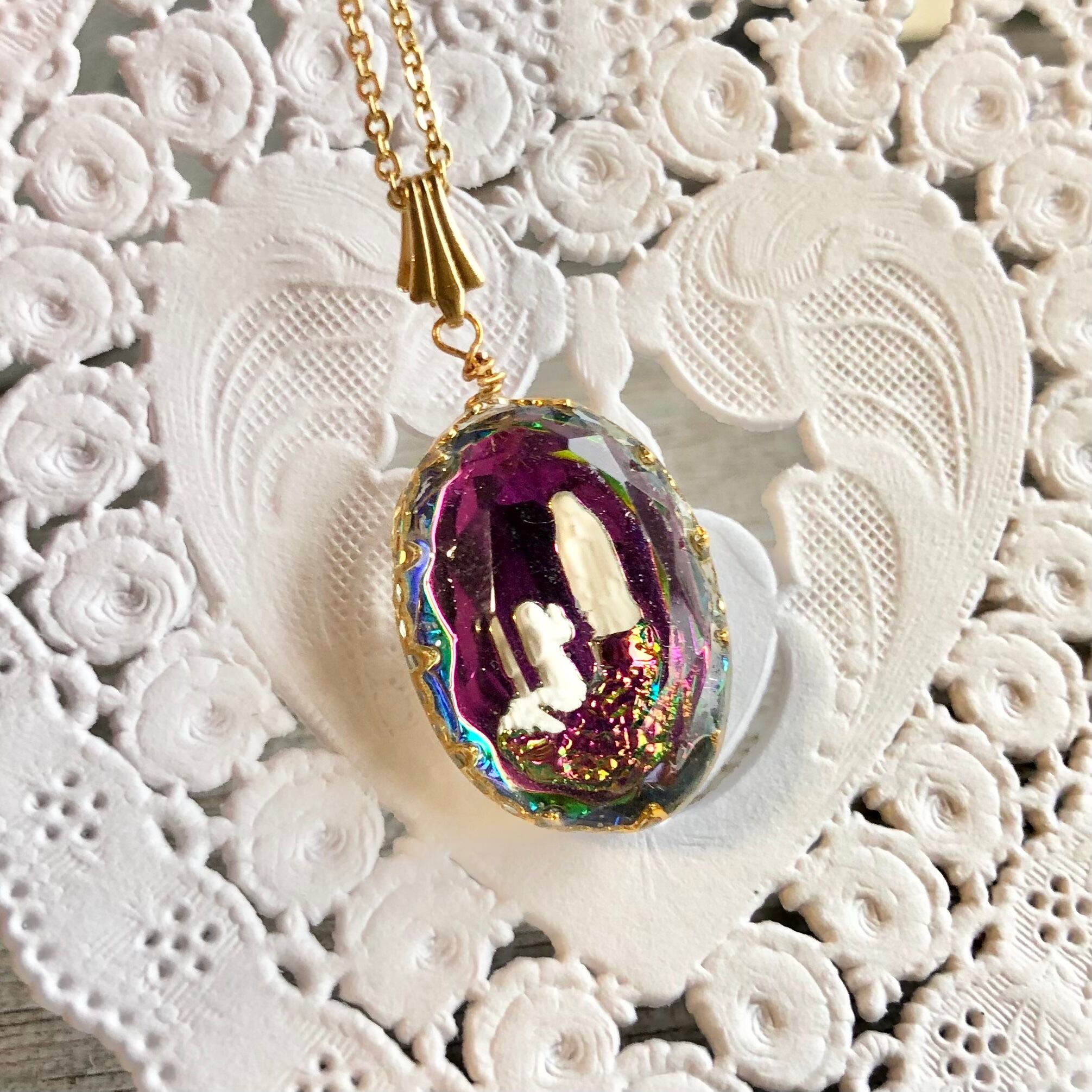 1950s ジャーマン ヴィンテージ マリア様 ベルナデッタ ヴィトレイル インタリオ ストーン ネックレス ペンダント サージカルステンレス316L