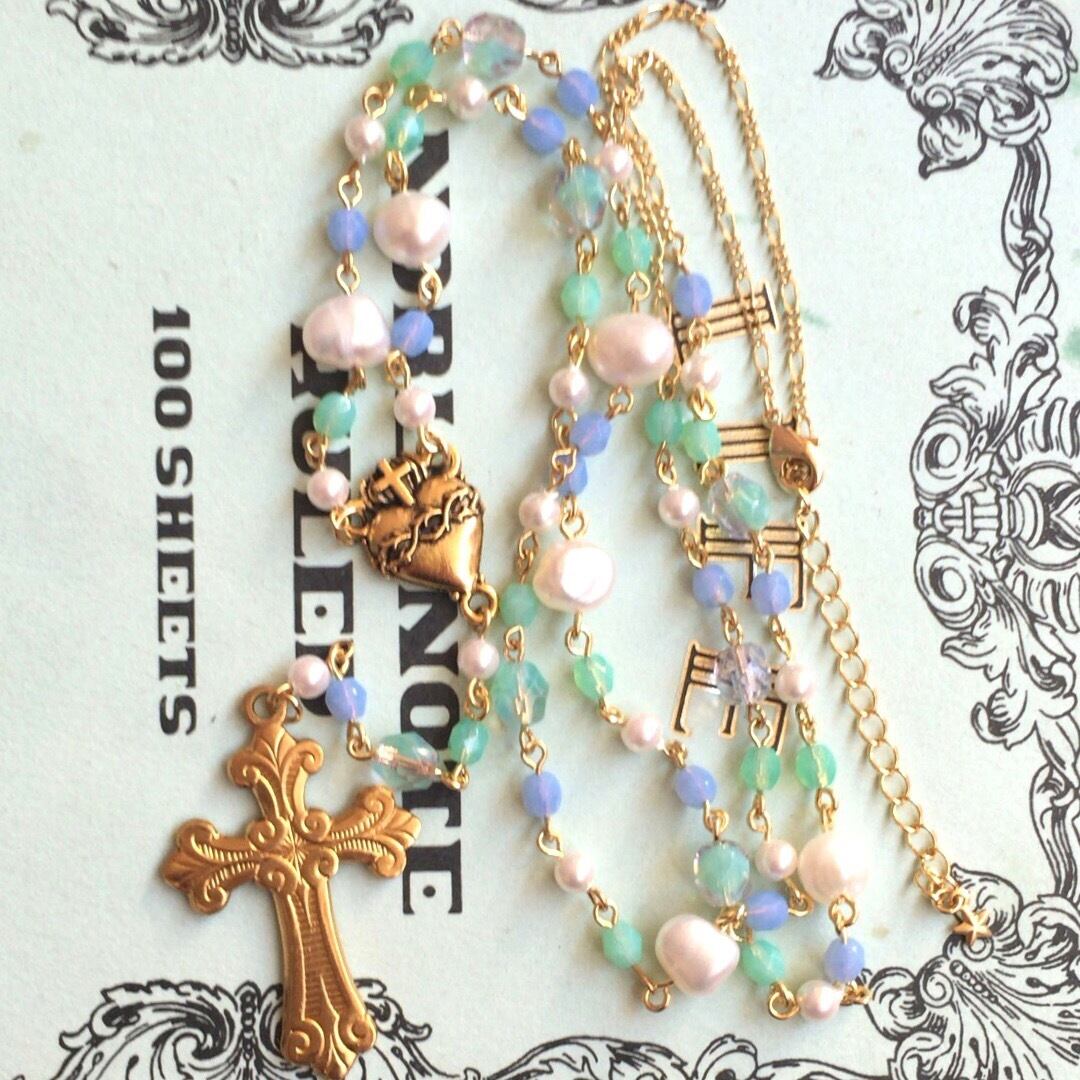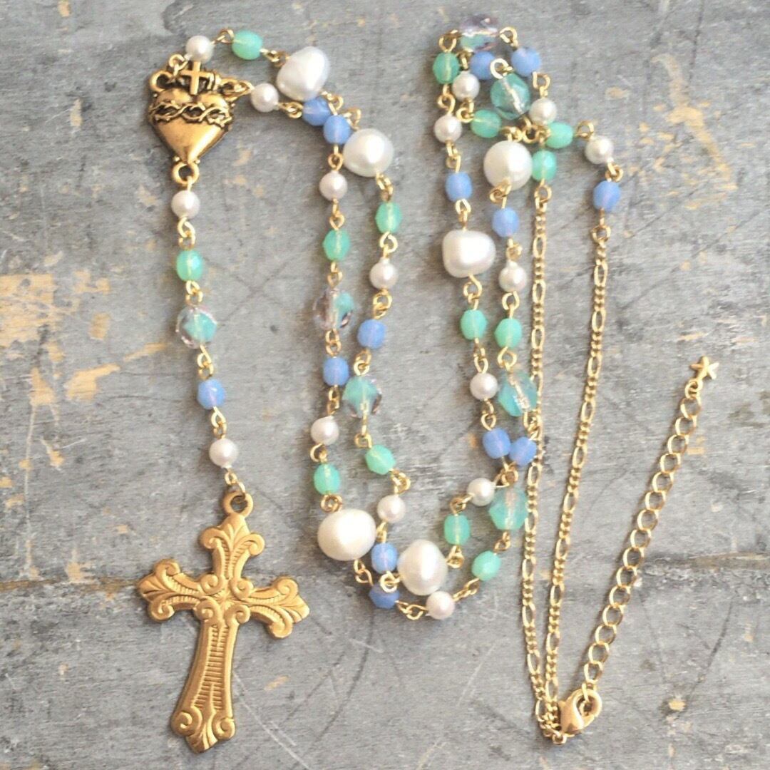 コスチュームジュエリー/ペンダント/アクセサリー/アンティーク/ビジュー/ネックレス/十字架/ハンドメイド/ハンドメイドアクセサリー/メダイ/マリア/マリア様/ラッピング無料/クロス/ハート/カラフル/海/青/緑/tiny star/ハンドメイド/パステル/ミント/スカイブルー