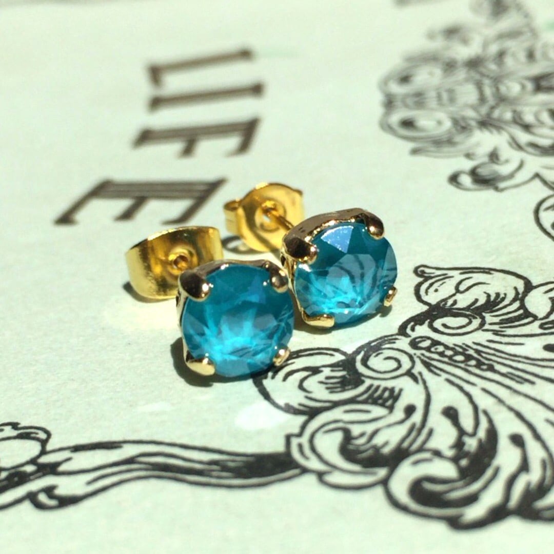 新色アズールブルースワロフスキークリスタルストーンピアス シンプル 青