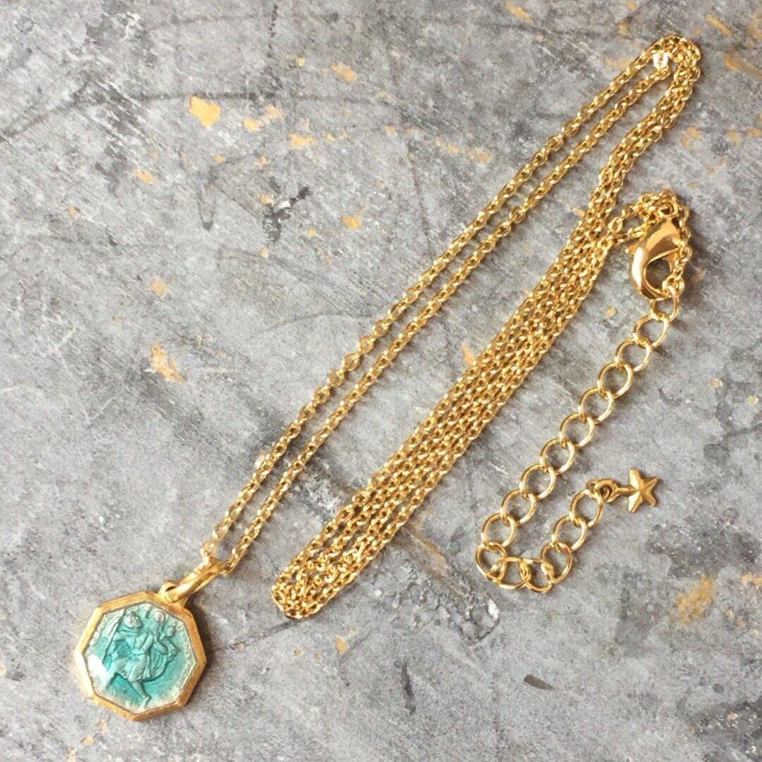 #tinystar#ハンドメイド#ハンドメイドアクセサリー#クリストフォロス#クリストフォロ#聖クリストファーネックレス#ペンダント#水色#お守り#ネックレス#メダイユ#メダイ#ビンテージ#ヴィンテージ