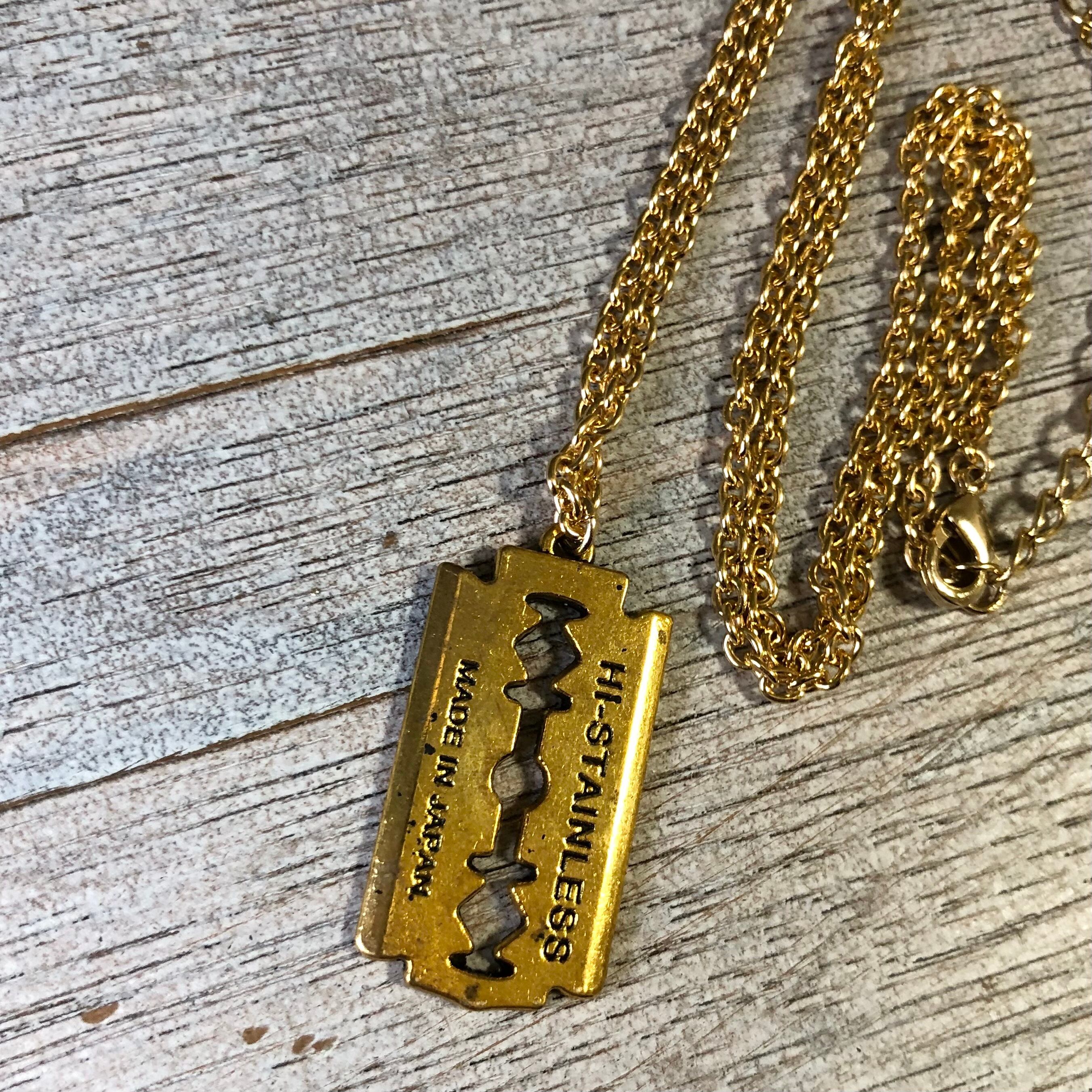 #かっこいい#メンズアクセサリー#プレゼント#ラッピング無料#tinystar#ハンドメイド#剃刀#シザー#かみそり#カミソリ#シンプル#個性的#ペンダント#ゴールド#メンズ#ロック