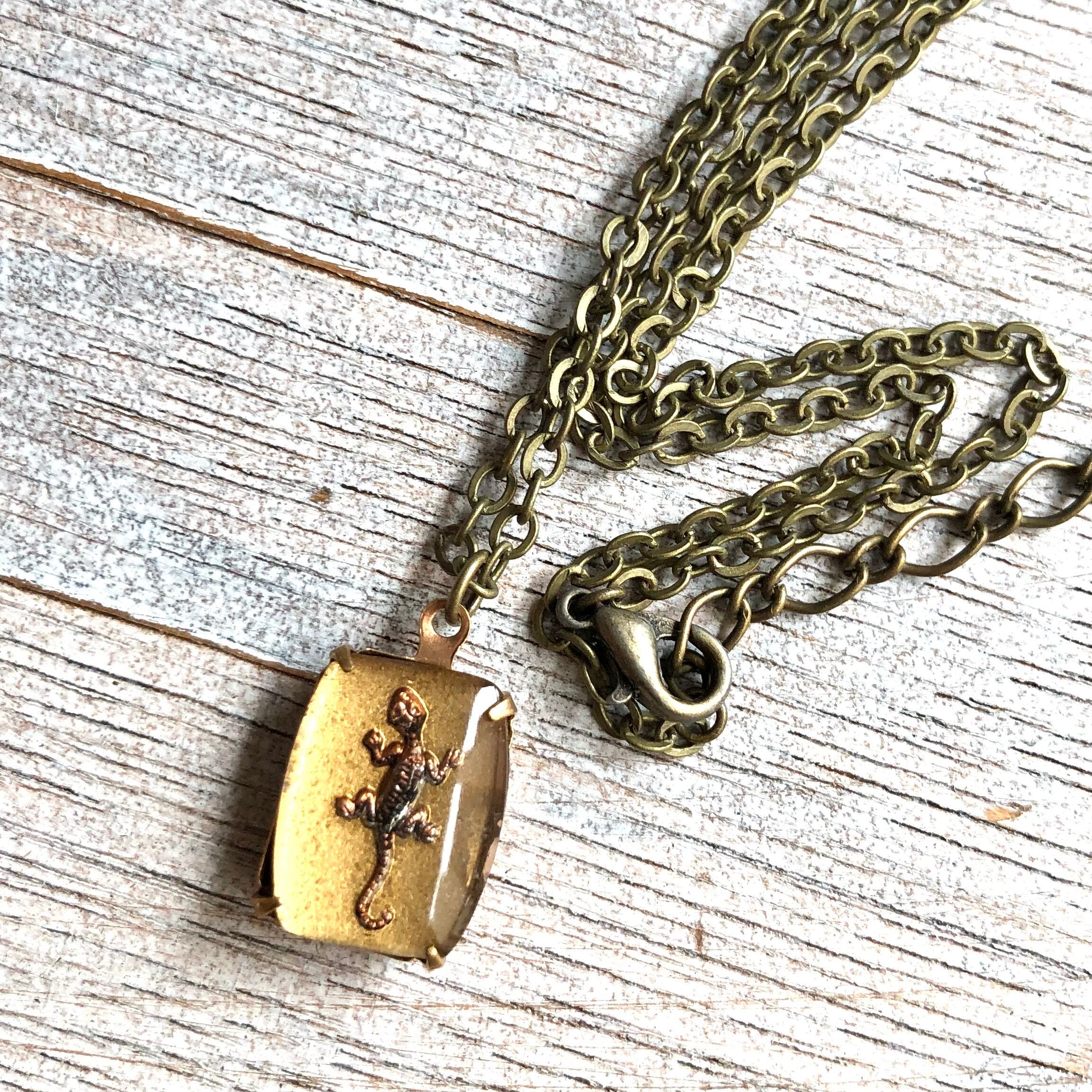 コスチュームジュエリー/ペンダント/アクセサリー/アンティーク/ネックレス/ハンドメイド/ハンドメイドアクセサリー/tinystar/アンティーク/とかげ/爬虫類/トカゲ/プレゼント/メンズ
